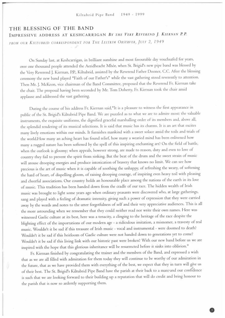 There are many other resources stored in the local studies section of Leitrim Library in Ballinamore which document the success of the Kiltubrid Pipe Band over the years.