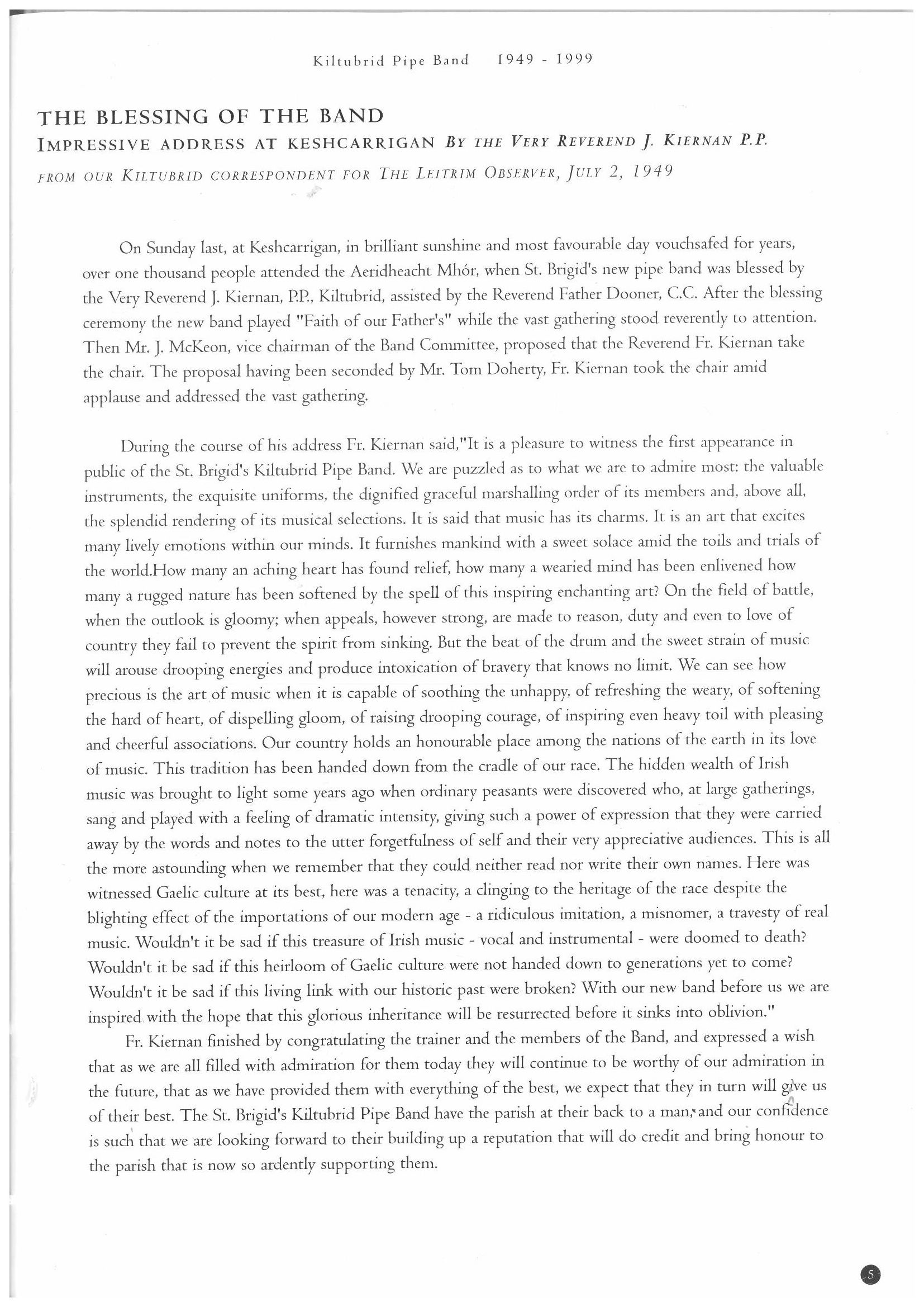Image from the Anniversary publication "Kiltubrid Pipe Band 1949-1999"
