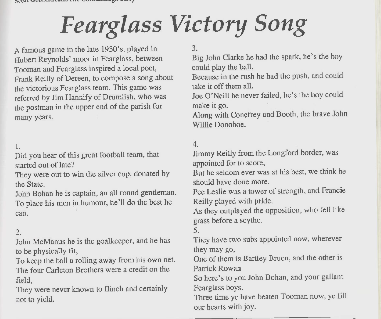 Songs for the Annaduff football teams written by Francis J. Cox.